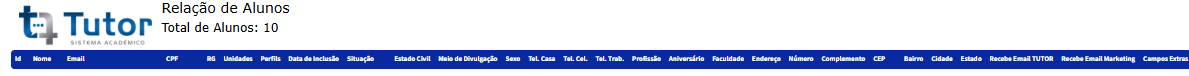 O Relatório de Relação de Alunos está localizado no Módulo Relatórios.