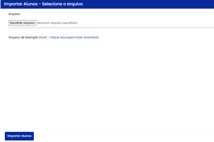 > O modelo da planilha aceita na ação de importação está disponível no próprio campo para download
