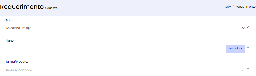 Tipo - campo para selecionar qual o tipo de requerimento que será aberto ao aluno.
