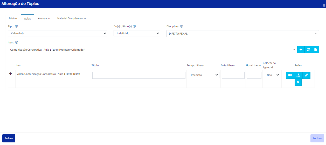 Selecione o TIPO Vídeo-Aula e clique no botão de atalho